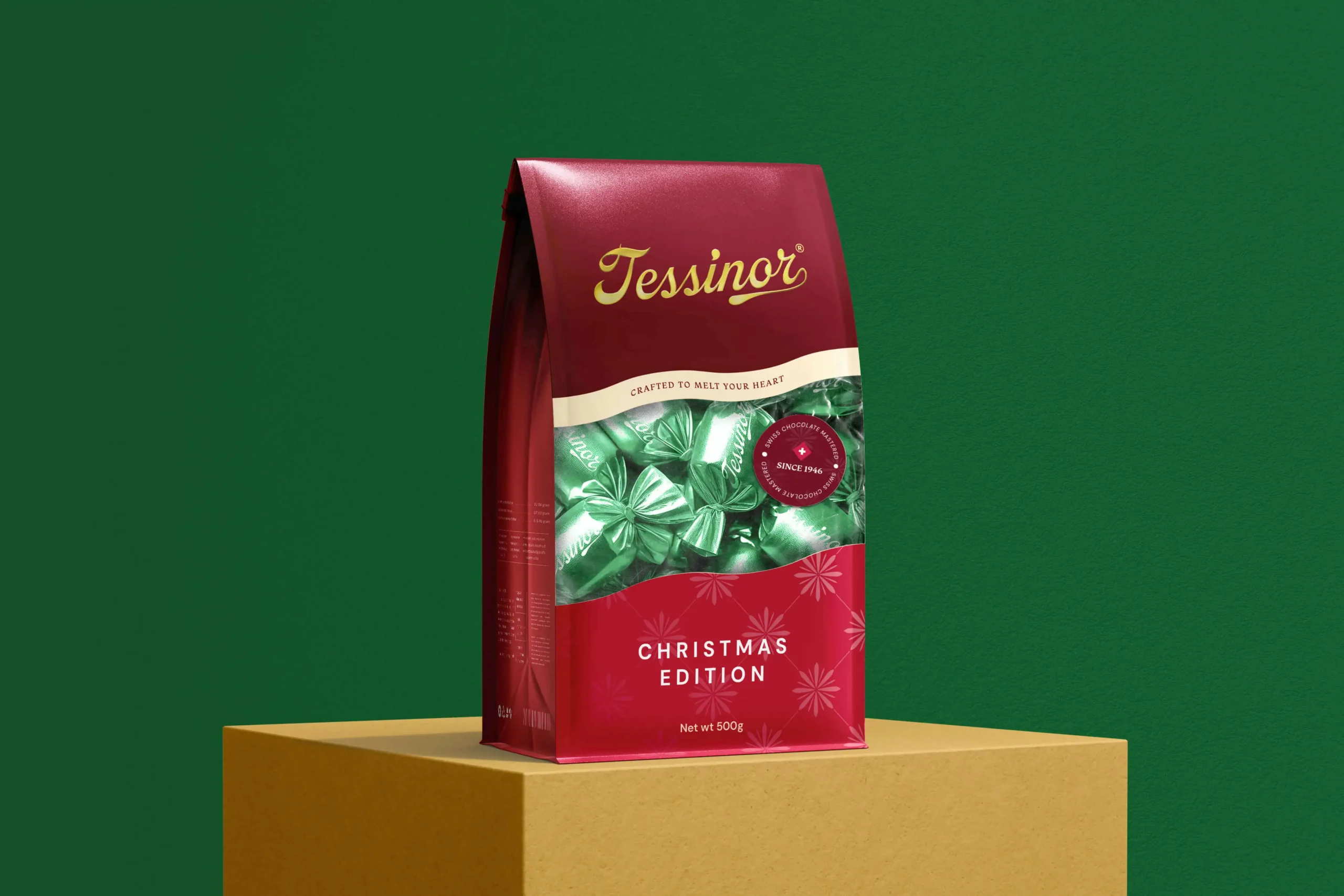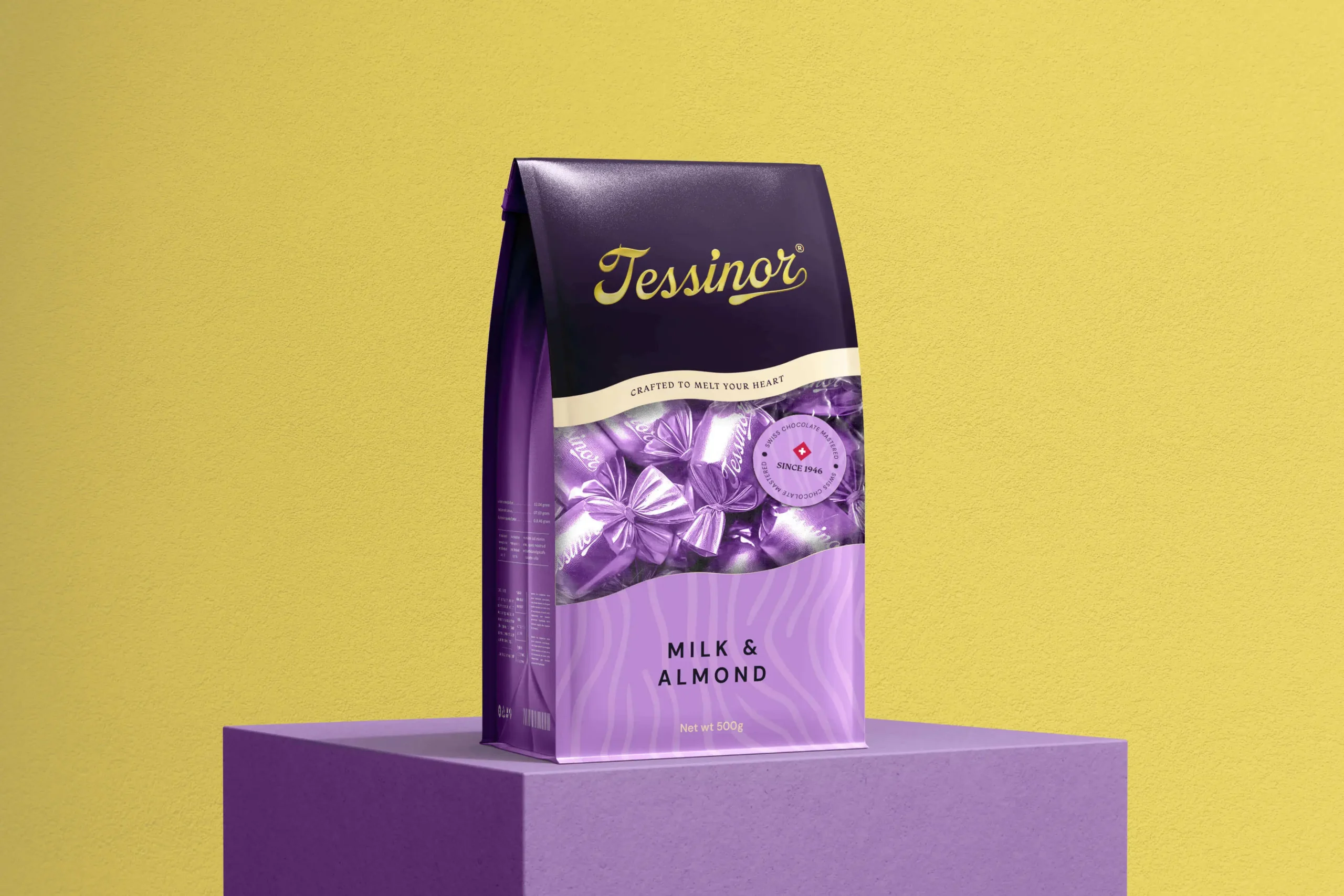 This stripped-back approach helps Tessinor stand out in a crowded aisle. By focusing on clarity and elegance, the new brand identity communicates premium quality and invites consumers to enjoy a moment of authentic Swiss pleasure